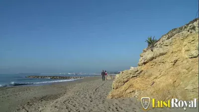 On the beach, stepmother is fucked by friend and cums inside her. They masturbate.